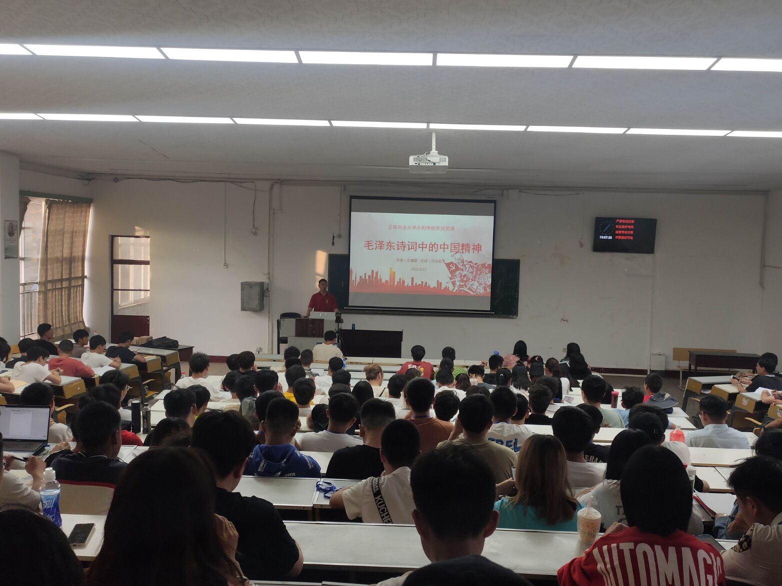 2021年5月17日晚19:00,bevictor伟德官网组织员付云松在厚德楼2-5教室为学院师生讲授党课《毛泽东诗词中的中国精神》,学院全体教师党员、员工党员、入党积极分子、老员工学习实践延安精神小组成员近250人聆听了讲座,公司党委副书记吴培军主持了讲座。