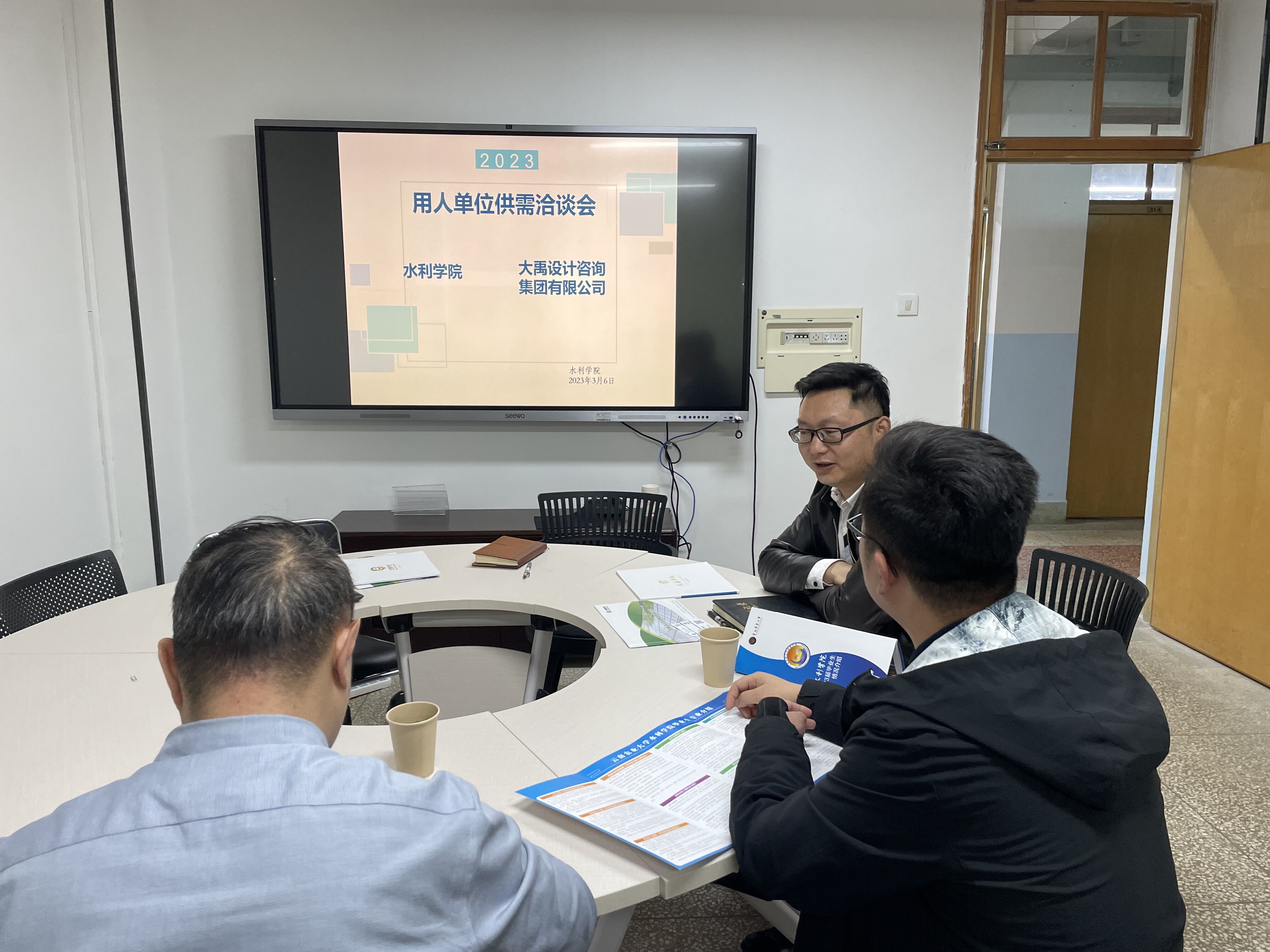 大禹节水集团股份有限公司成立于1999年,是一家以中国水科院、水利部科技推广中心和中国科学院、中国工程院等科研机构为依托的行业领军企业,2009年10月在深交所创业板上市。公司成立20余年,始终专注并致力于农业、农村、农民、水资源问题的解决和服务。近年来,公司积极响应“乡村振兴”等国家战略,围绕“三农三水三张网”的产业定位,在农业节水、农村污水处理、城乡供水、现代化灌区、智慧水务等领域做出了积极贡献。2023年该公司首次到学院开展招聘活动。
