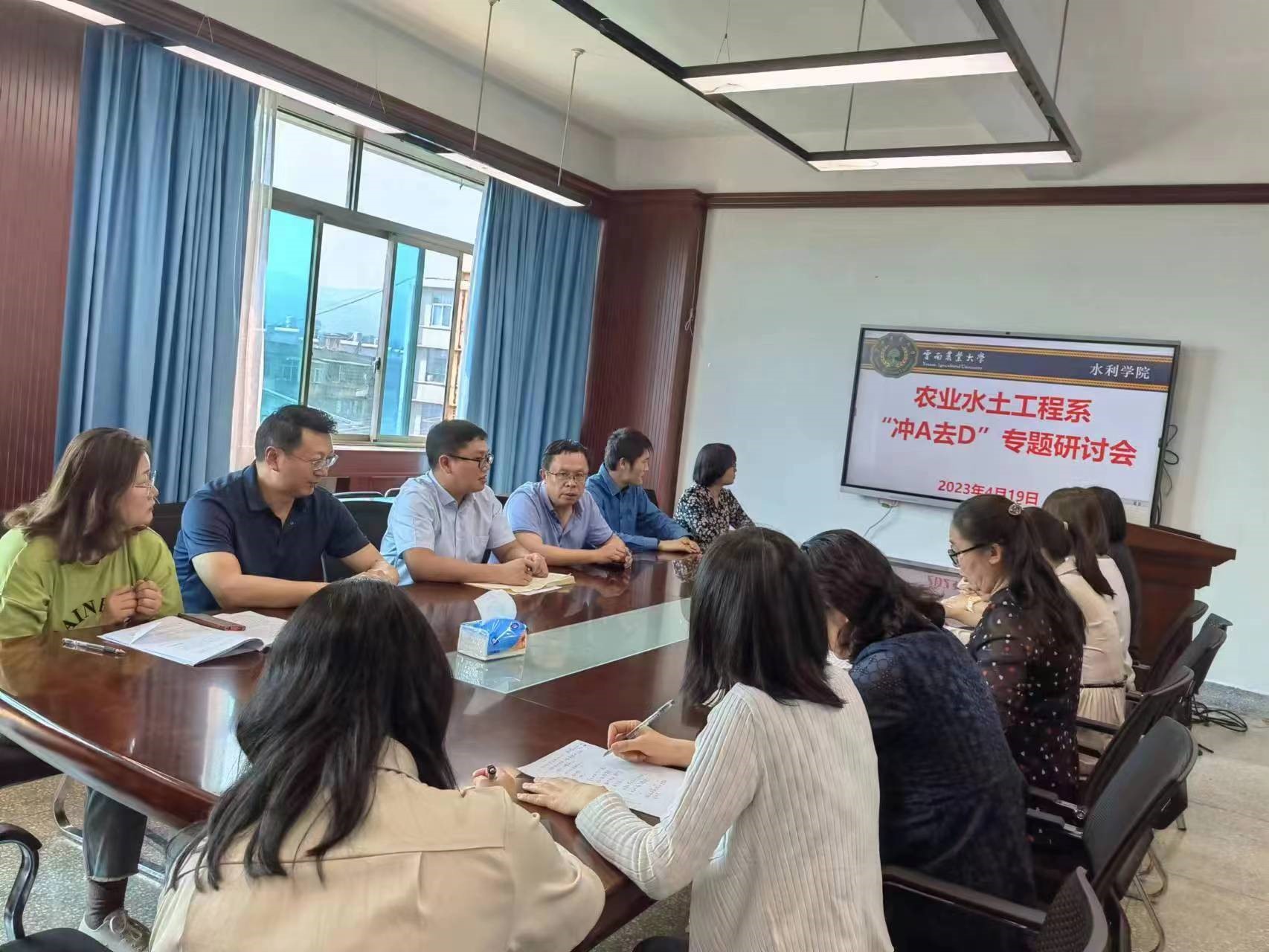 为确保农业水土工程系农业水利工程专业和土地整治工程专业冲A去D工作取得实效,2023年4月19日,农业水土工程系组织全系教师进行专题研讨,李靖经理出席会议。