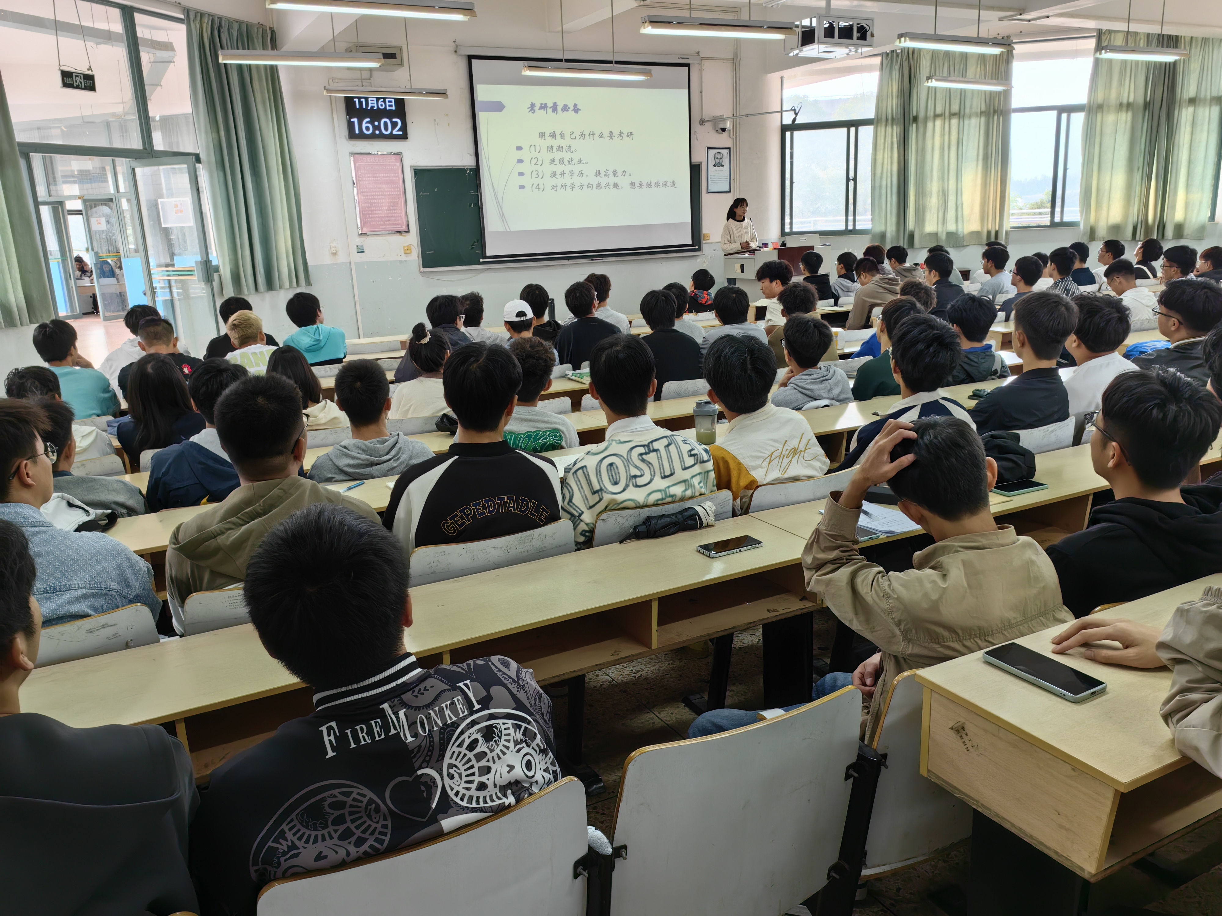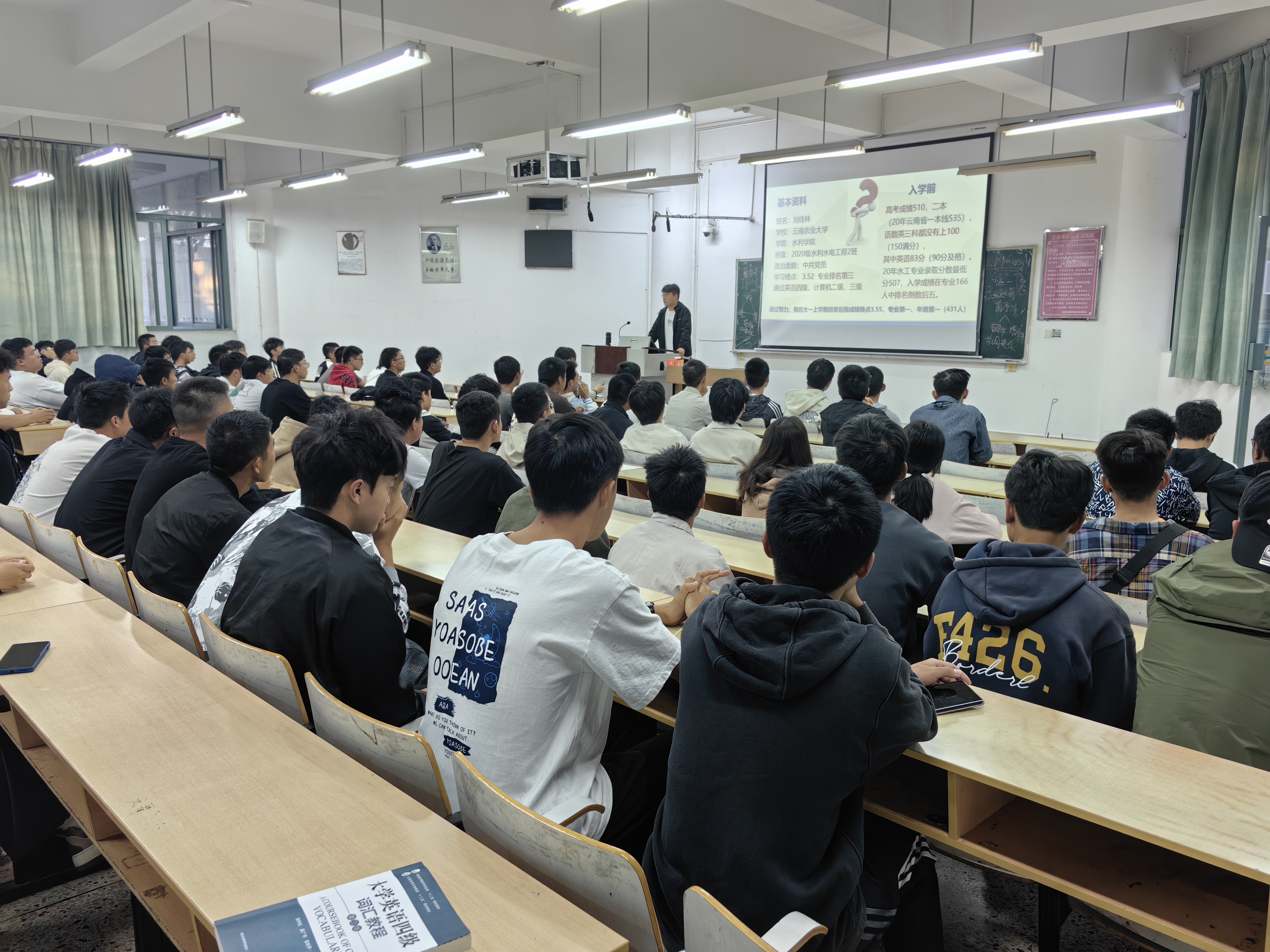 2023年11月6日下午,通过辅导员栗静老师的安排,水利工程系在尚农楼3-17教室为2021级水利水电工程专业近150人举行考研动员会和就业恳谈会,邀请已经上岸的研究生学长介绍备考经验,同时结合云南水利发展、社会用人单位需求,引导大家从三年级开始,积极规划,为后续的研究生升学及优质就业储备专业基础及专业能力。